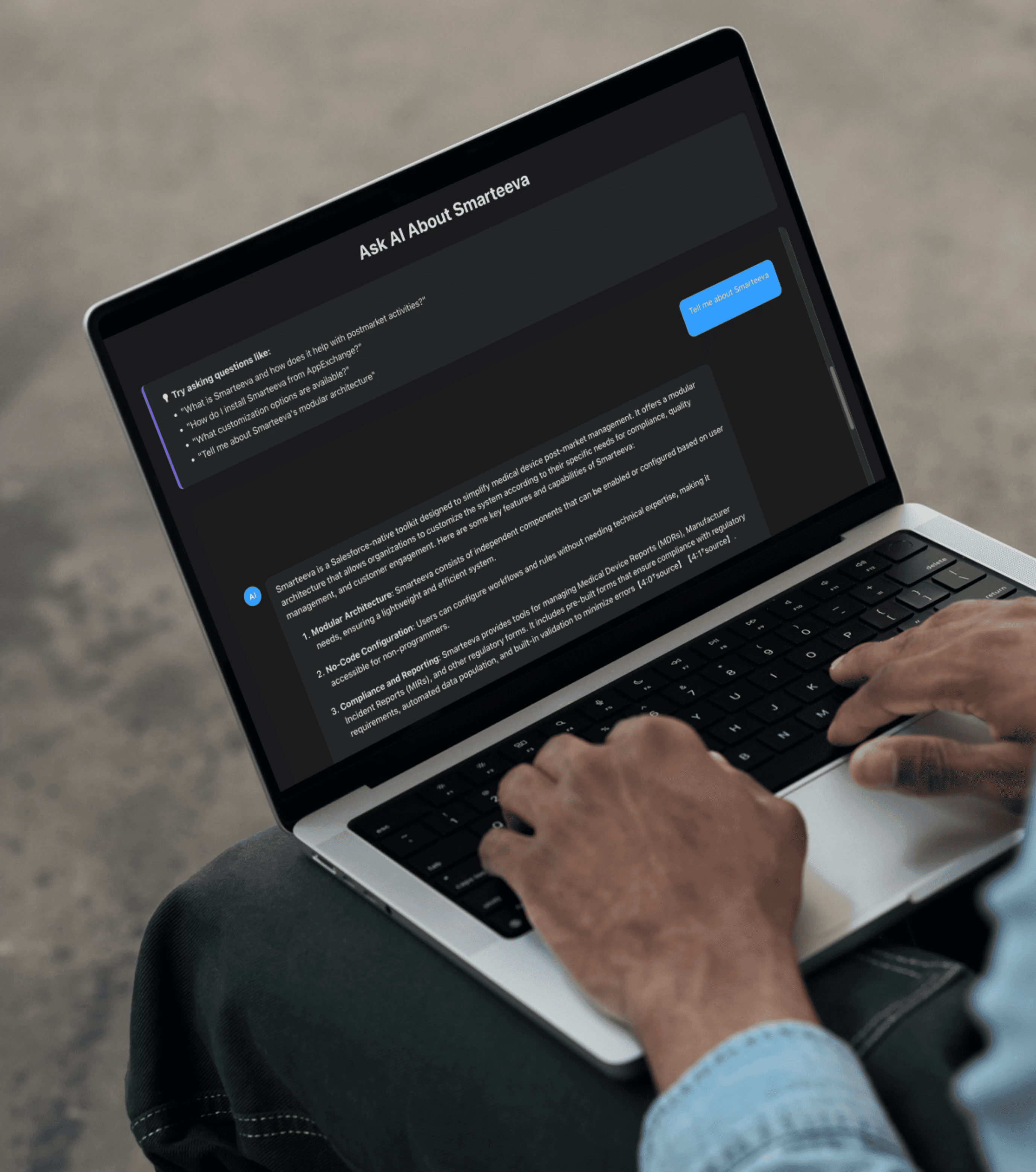 A conversational AI assistant integrated into Smarteeva’s Docusaurus documentation ecosystem. It helps users instantly understand complex product concepts, find answers, and navigate technical documentation through natural-language queries. Powering this experience is a hybrid RAG architecture, combining static embeddings, dynamic updates, and reference-driven responses for trust and accuracy.