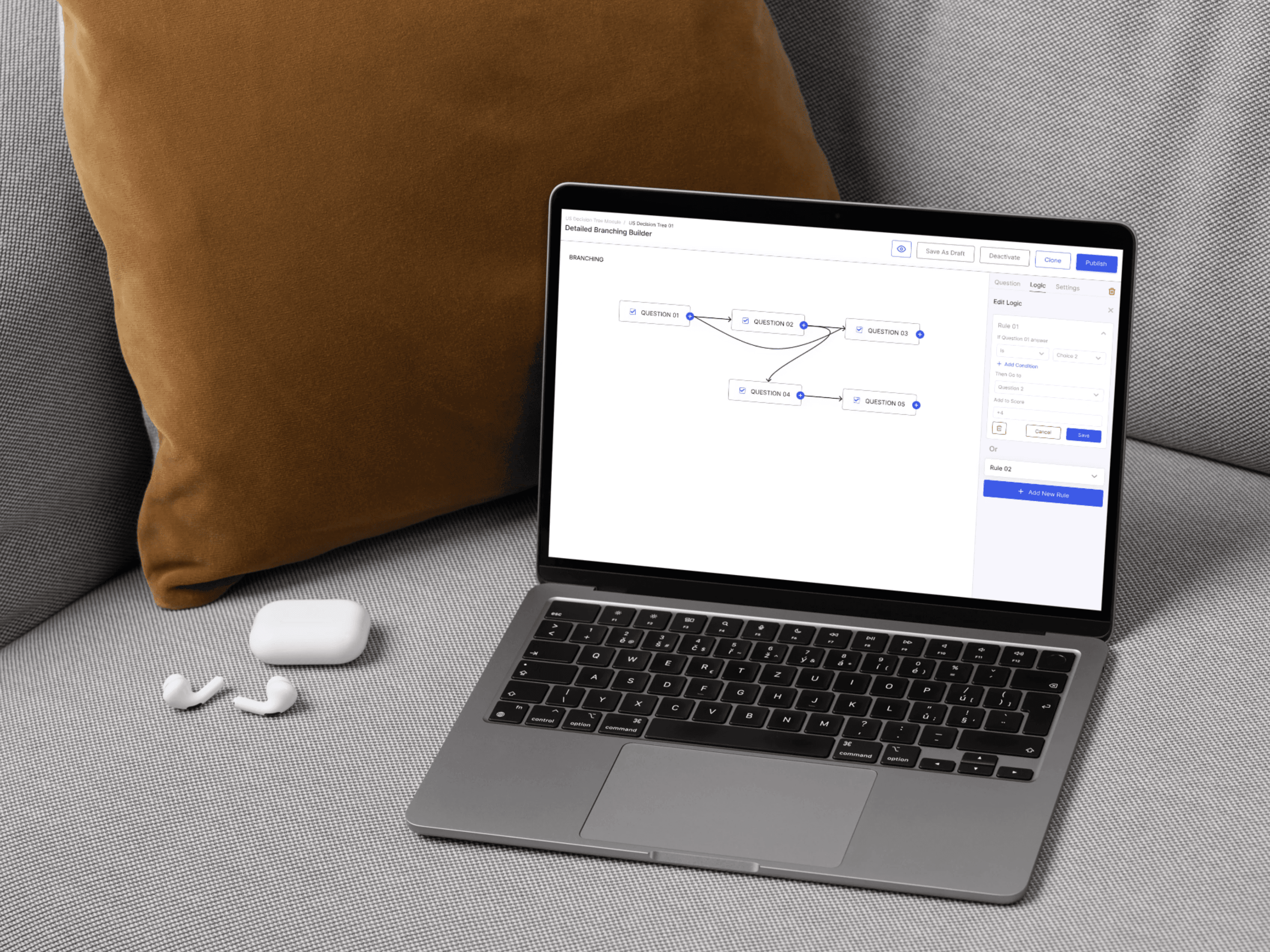 A complete transformation of Smarteeva’s legacy decision-tree tool into a modern, visual rule-building environment with instant preview, guardrails, and intuitive branching. The redesign reduced configuration errors, accelerated admin workflows, and became the core logic engine powering multiple regulatory modules.